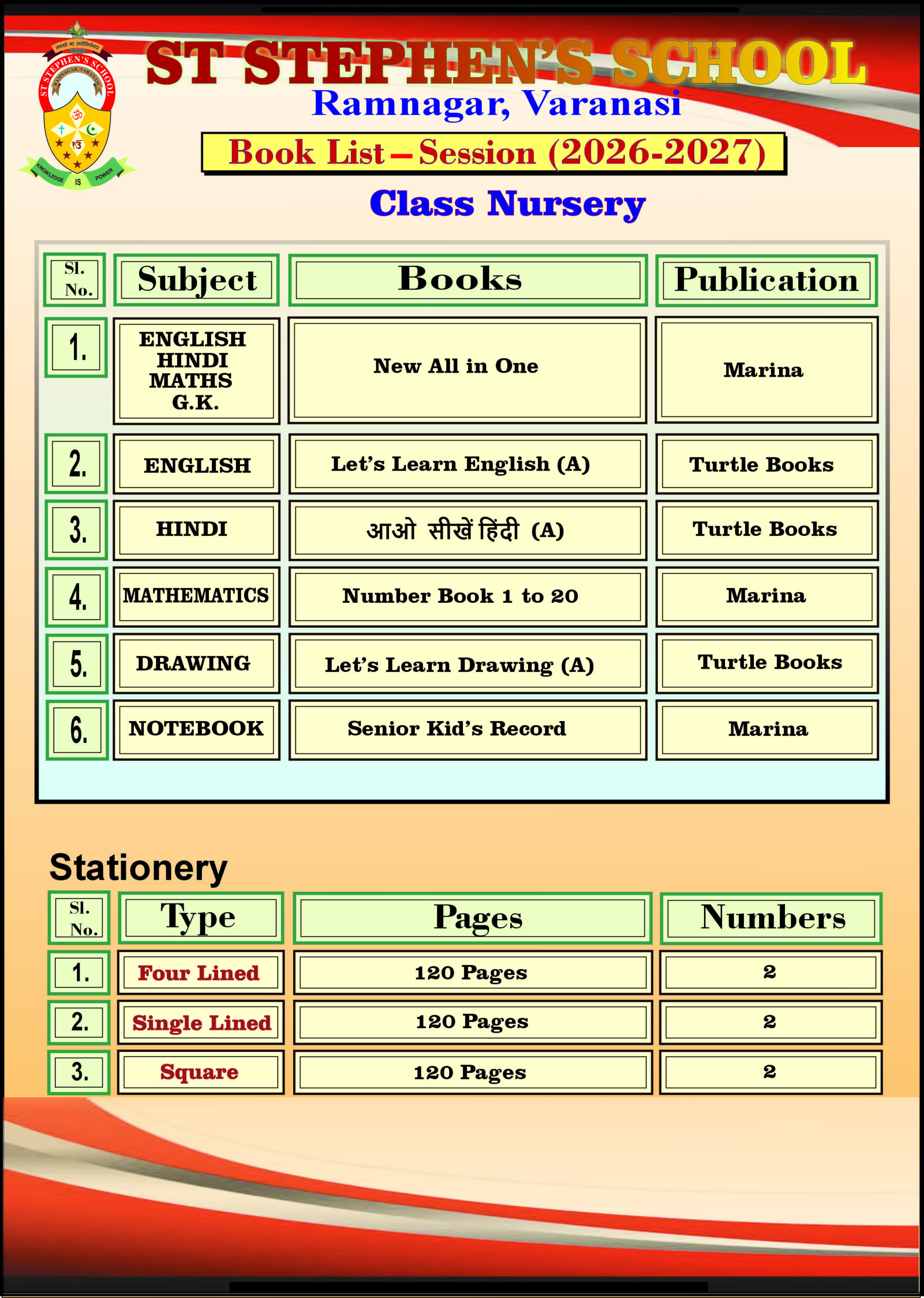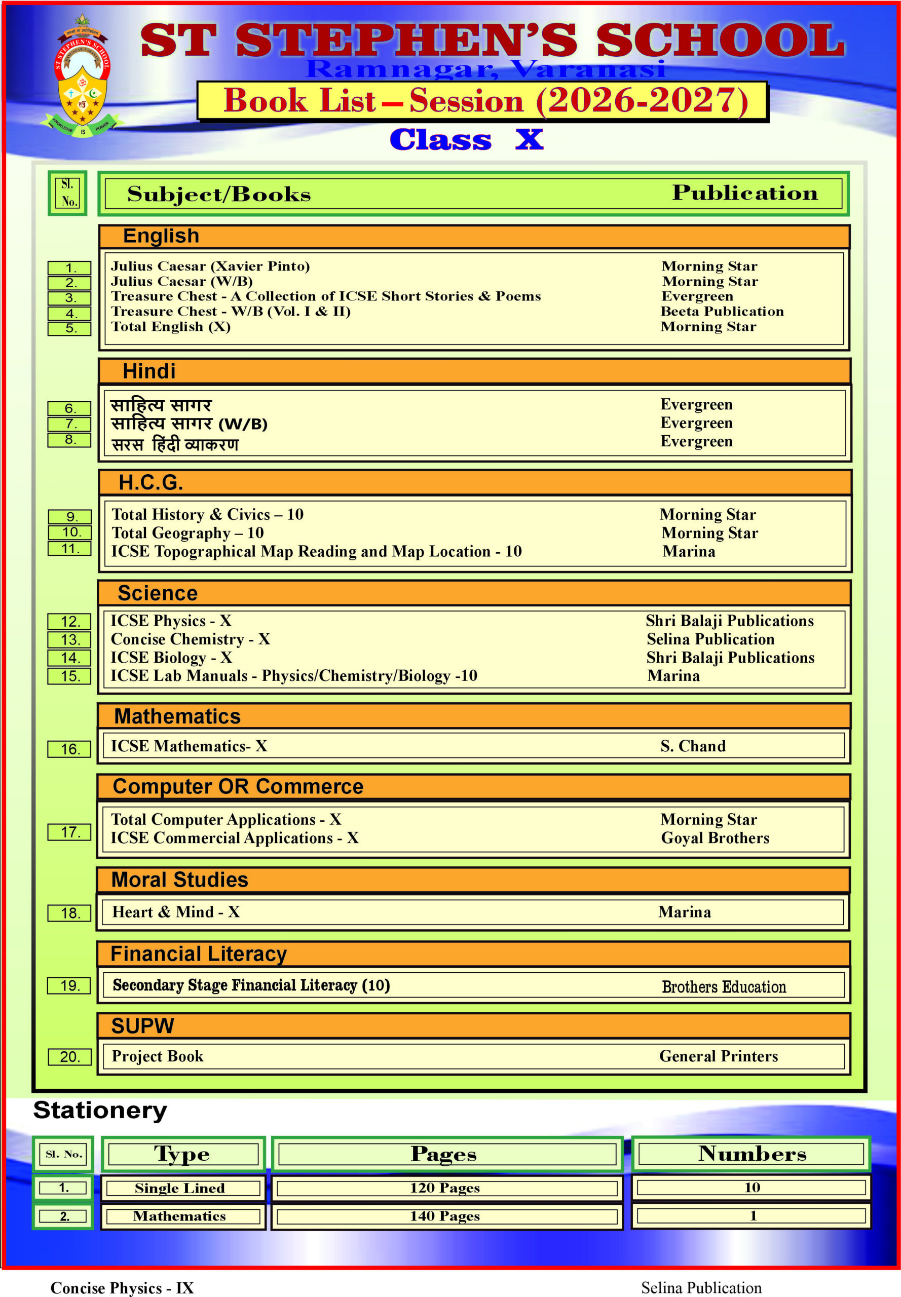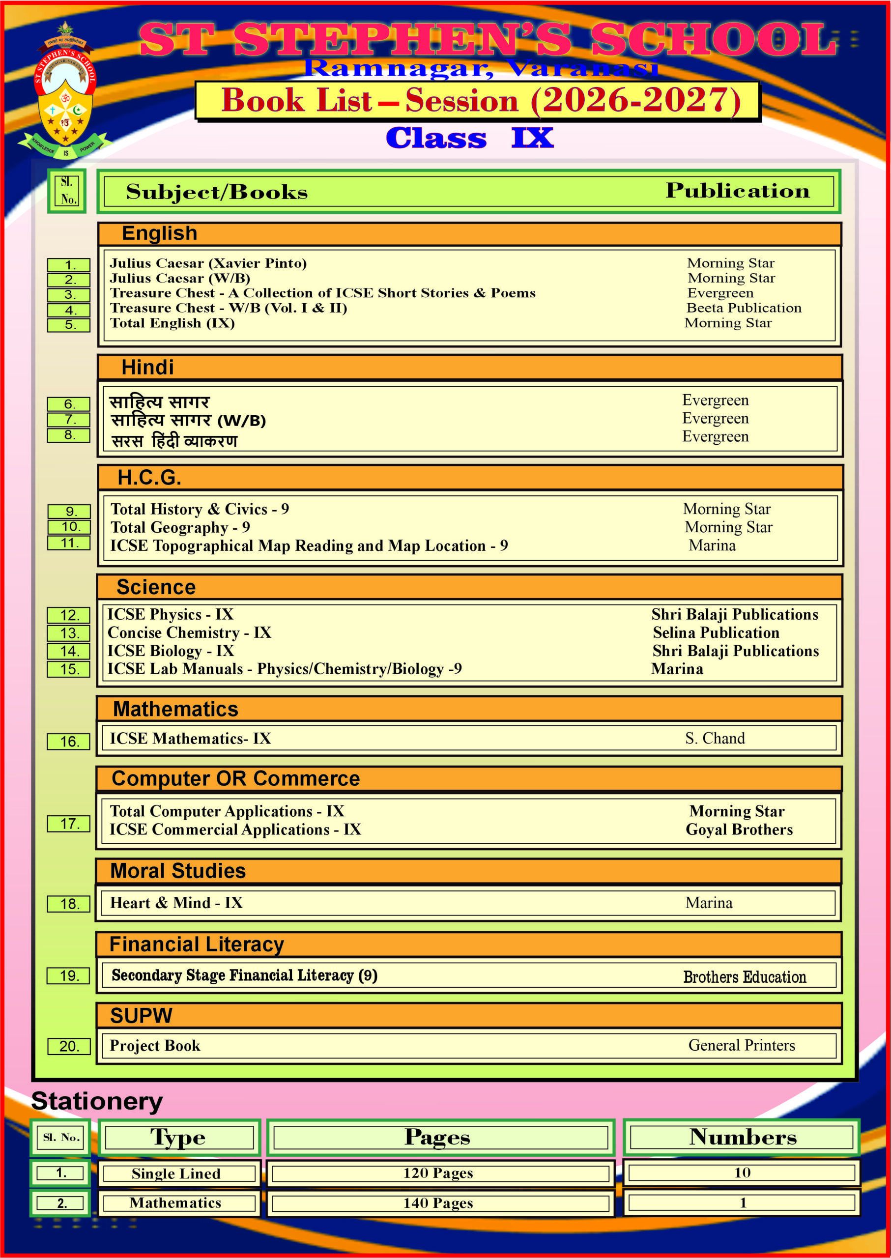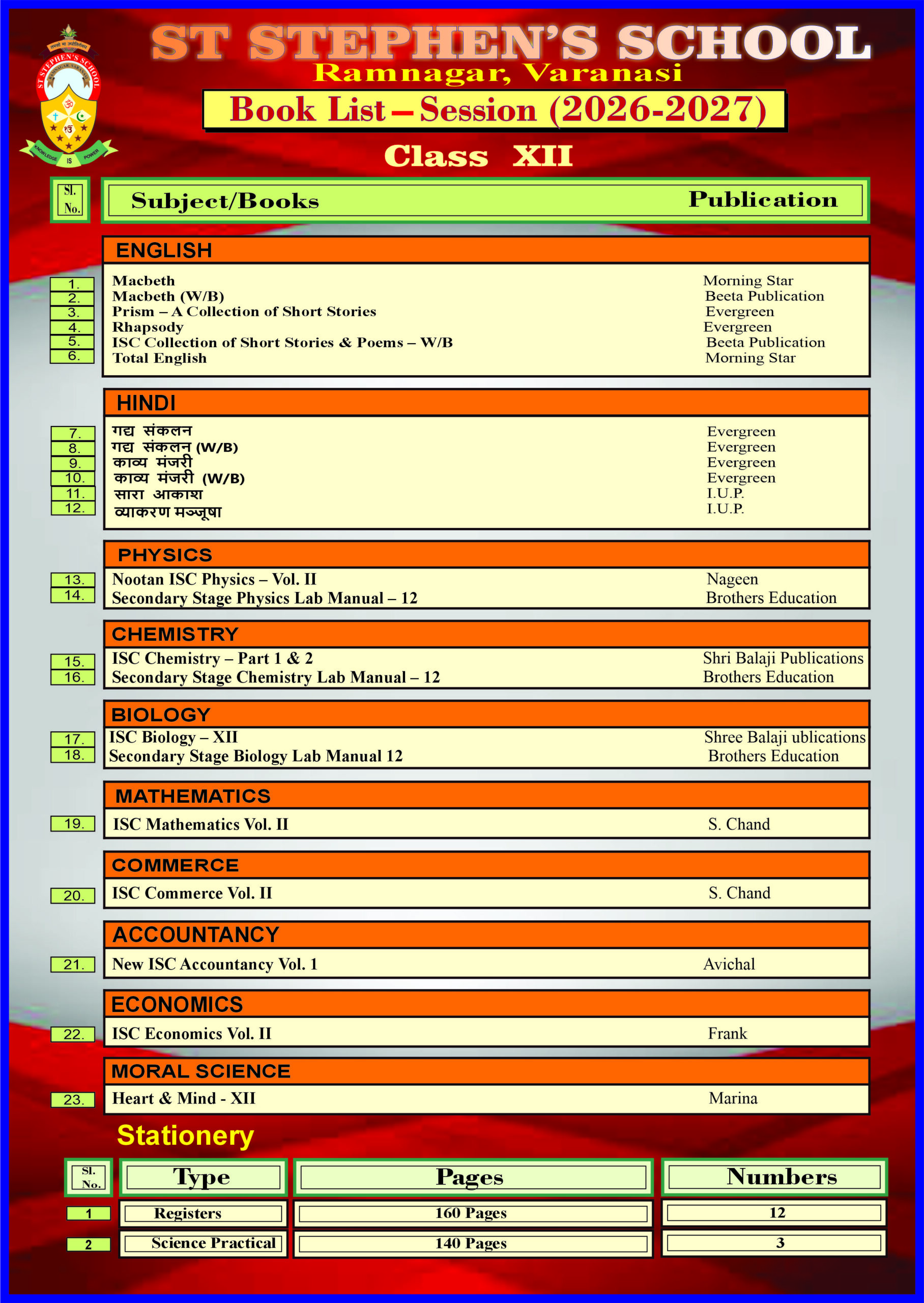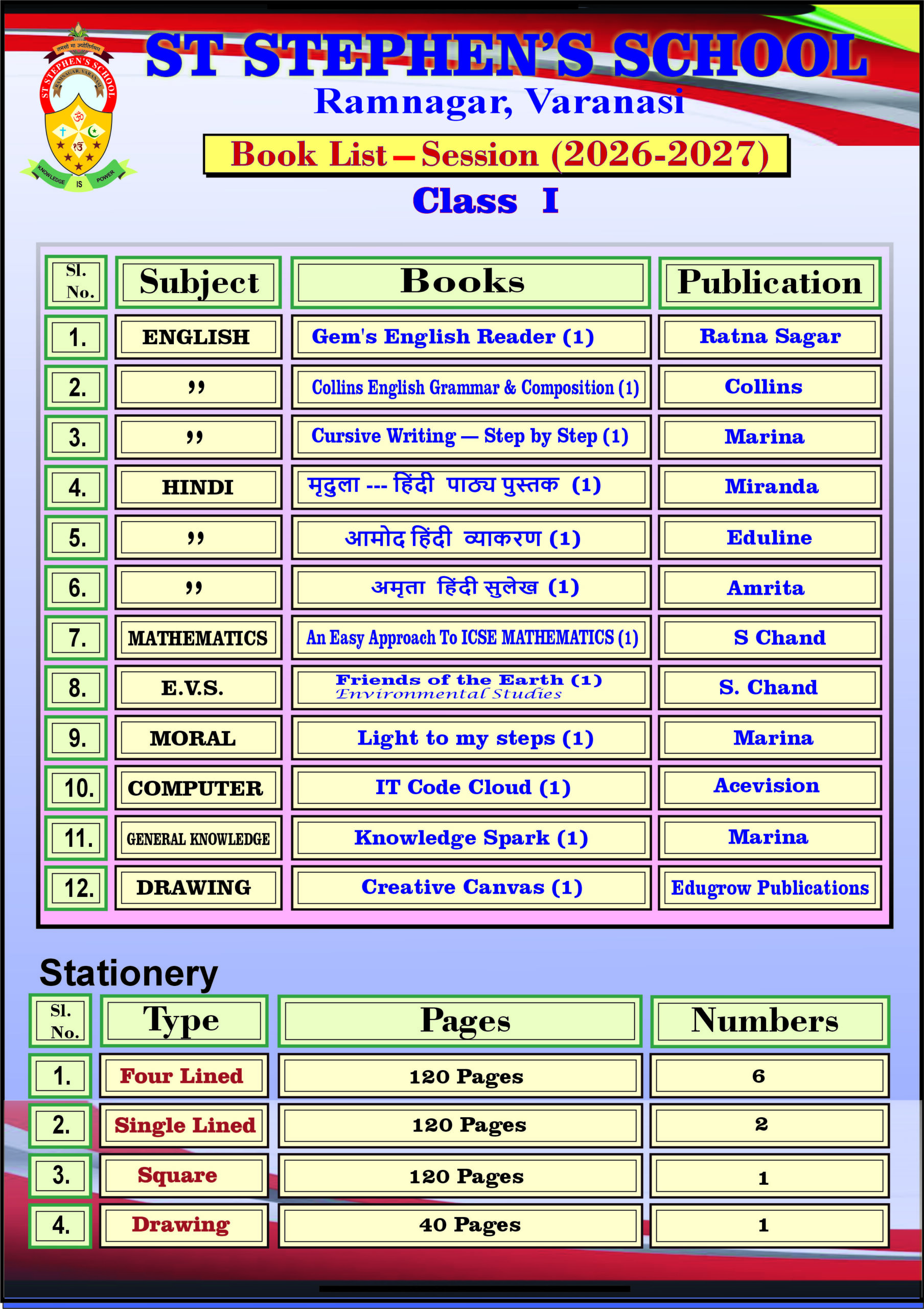 BOOK LIST : 2026-27 Nursery Download LKG Download UKG Download Class I Download Class II Download Class III Download Class IV Download Class V Download Class VI Download Class VII Download Class VIII Download Class IX Download Class X Download Class XI Download Class XII Download