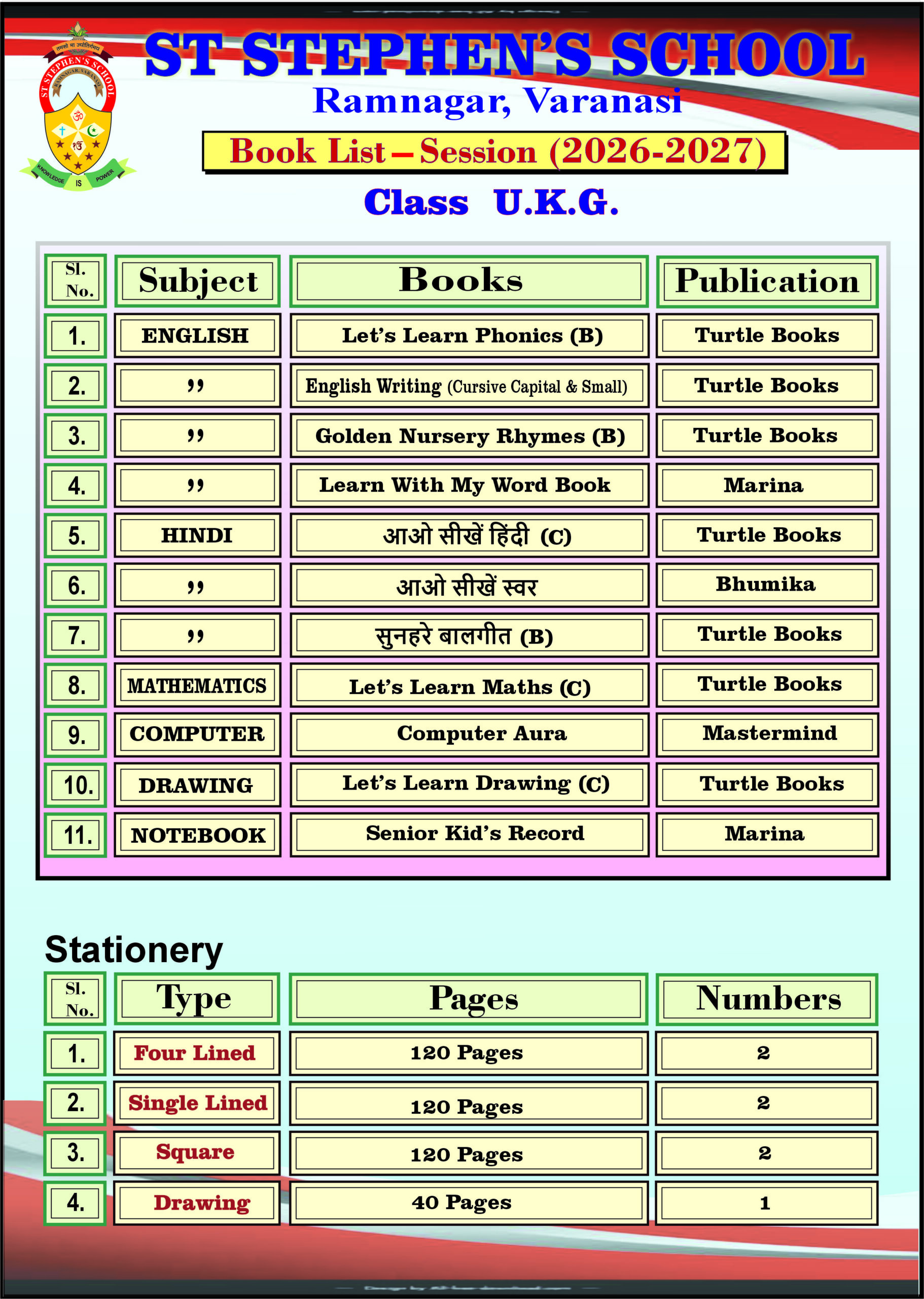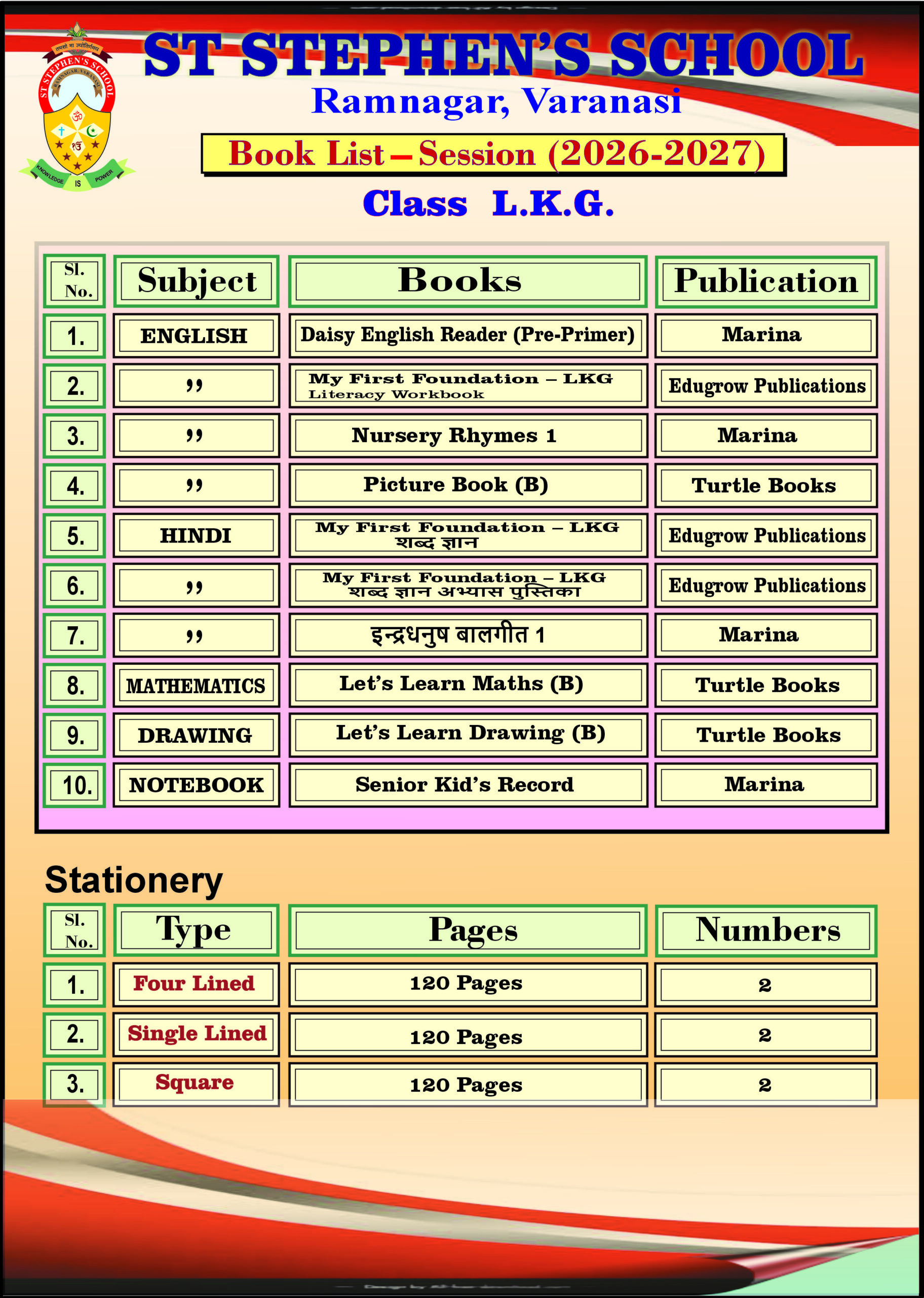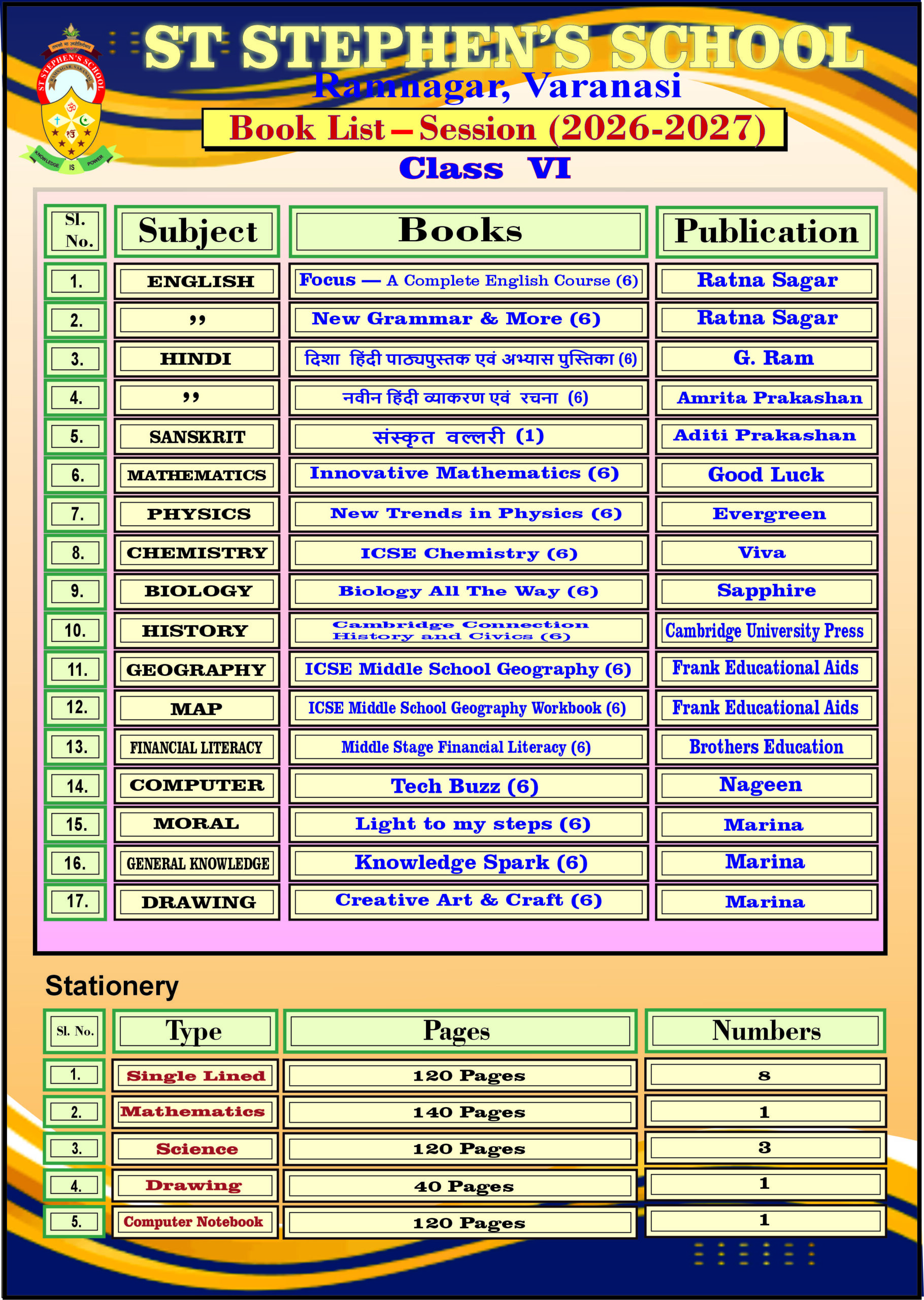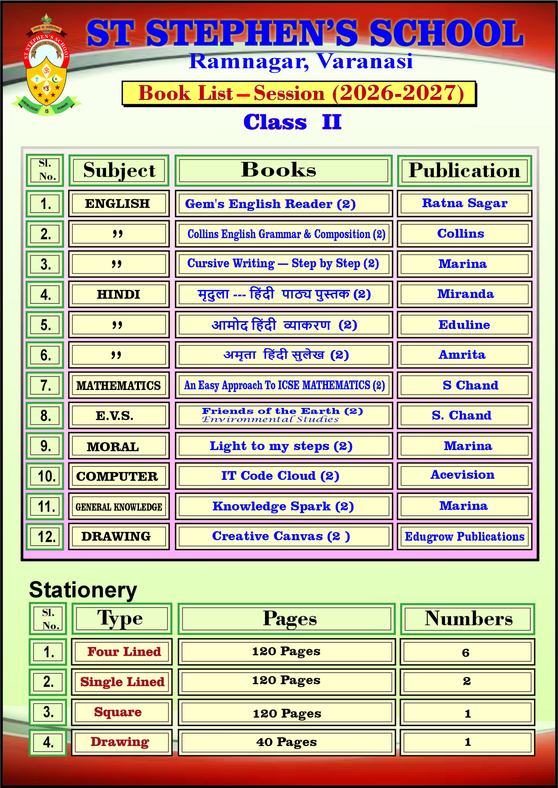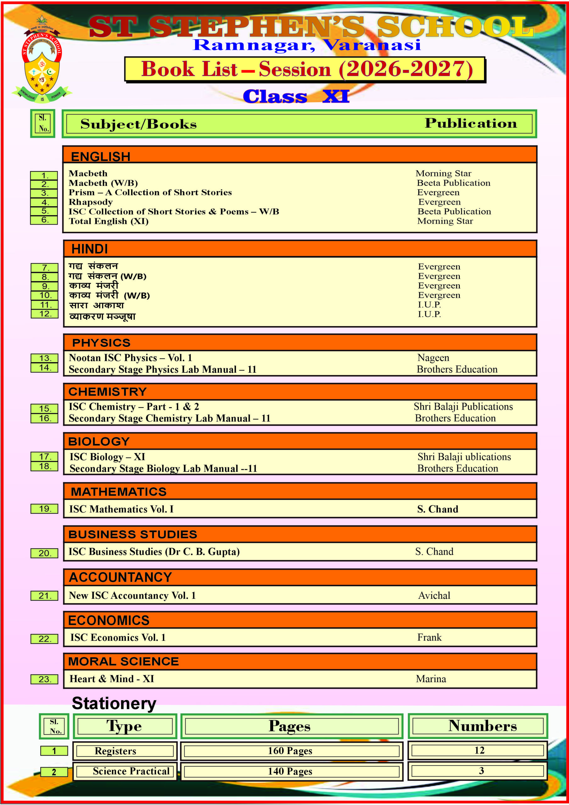 BOOK LIST : 2026-27 Nursery Download LKG Download UKG Download Class I Download Class II Download Class III Download Class IV Download Class V Download Class VI Download Class VII Download Class VIII Download Class IX Download Class X Download Class XI Download Class XII Download