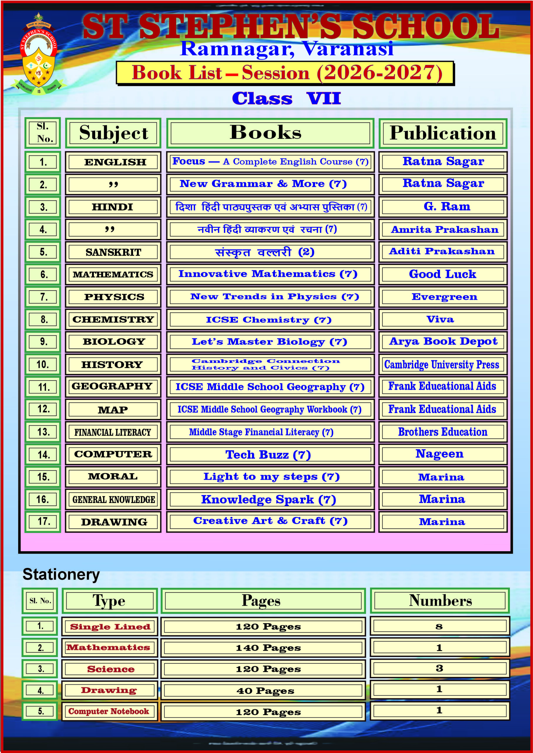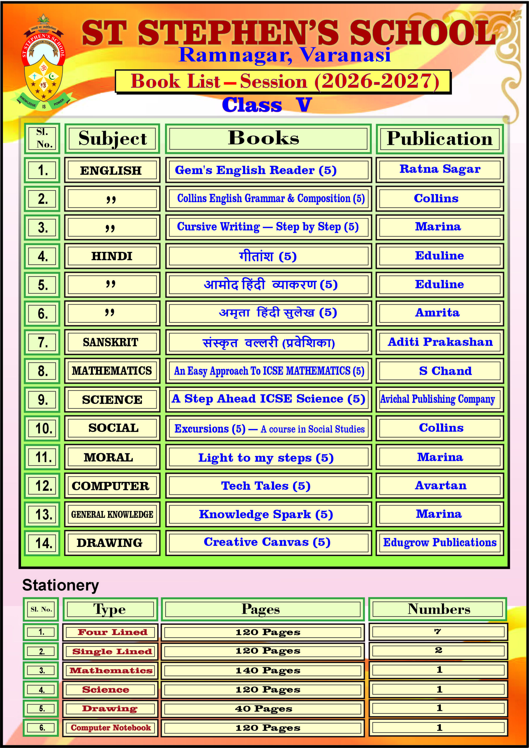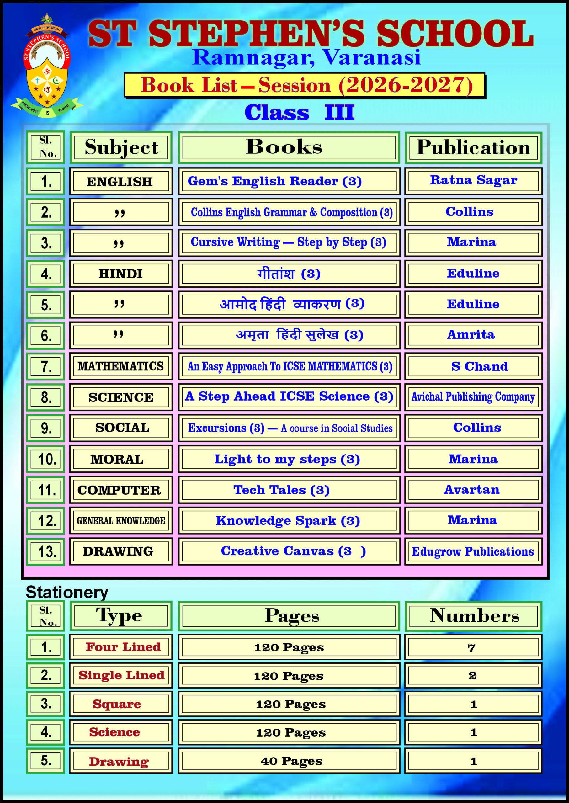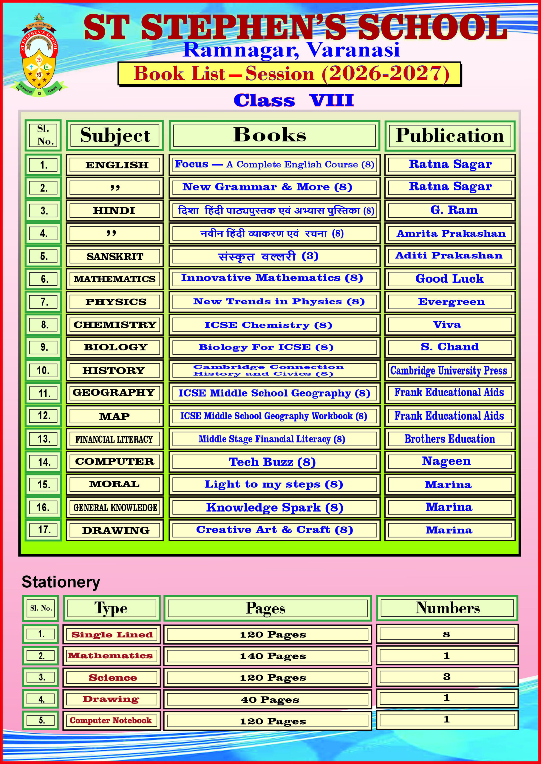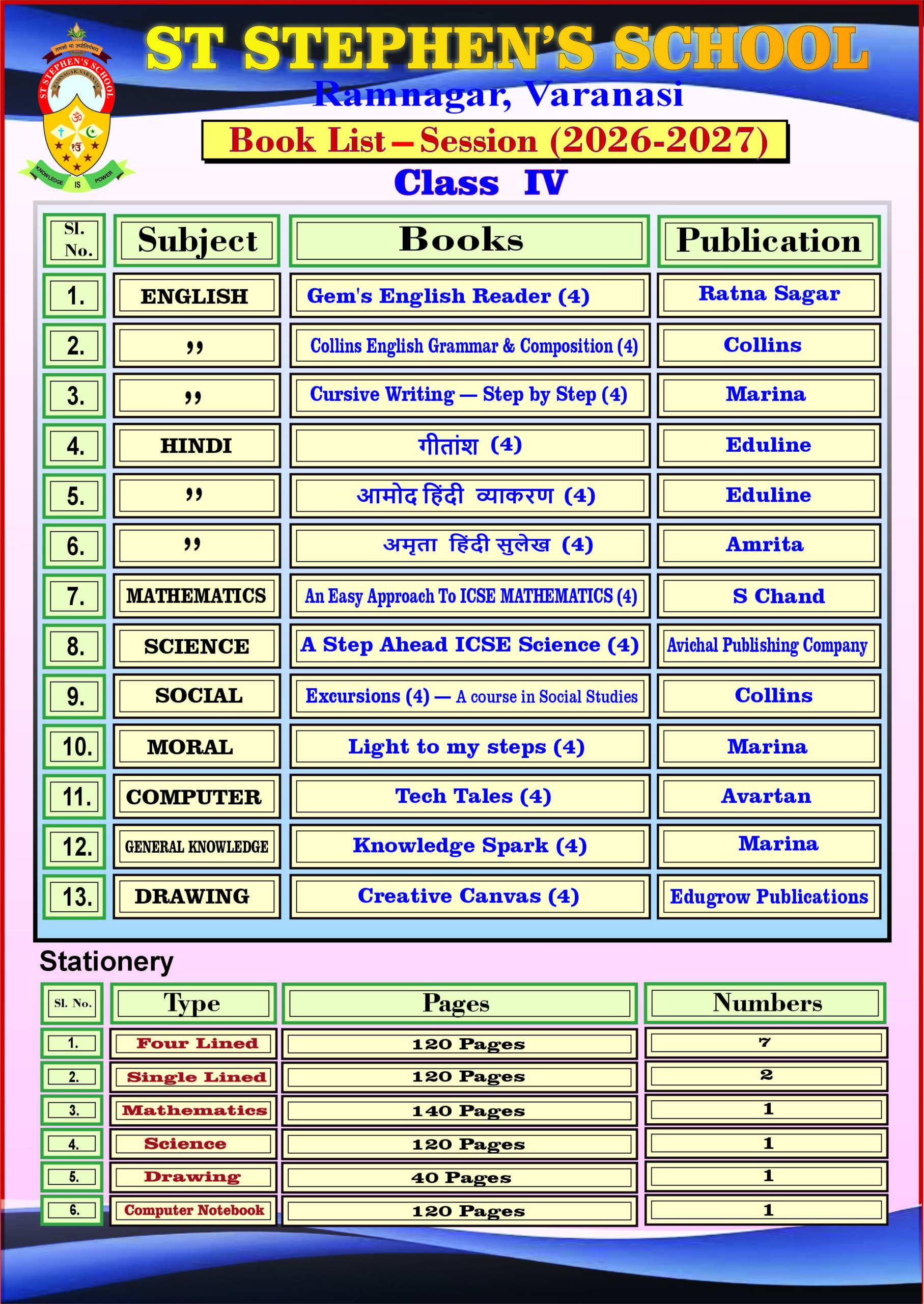 BOOK LIST : 2026-27 Nursery Download LKG Download UKG Download Class I Download Class II Download Class III Download Class IV Download Class V Download Class VI Download Class VII Download Class VIII Download Class IX Download Class X Download Class XI Download Class XII Download